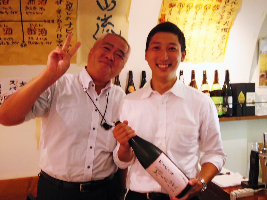 (写真は私と、偶々お店にいらした瀧自慢酒造のAさん