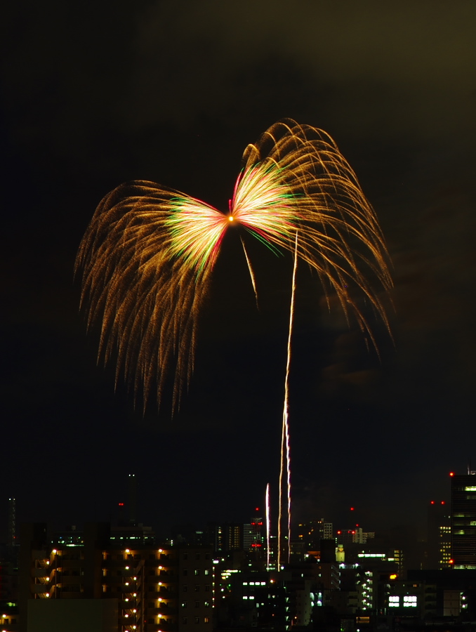 ライトアップされていました。どこかで花火も上がっていましたね。)